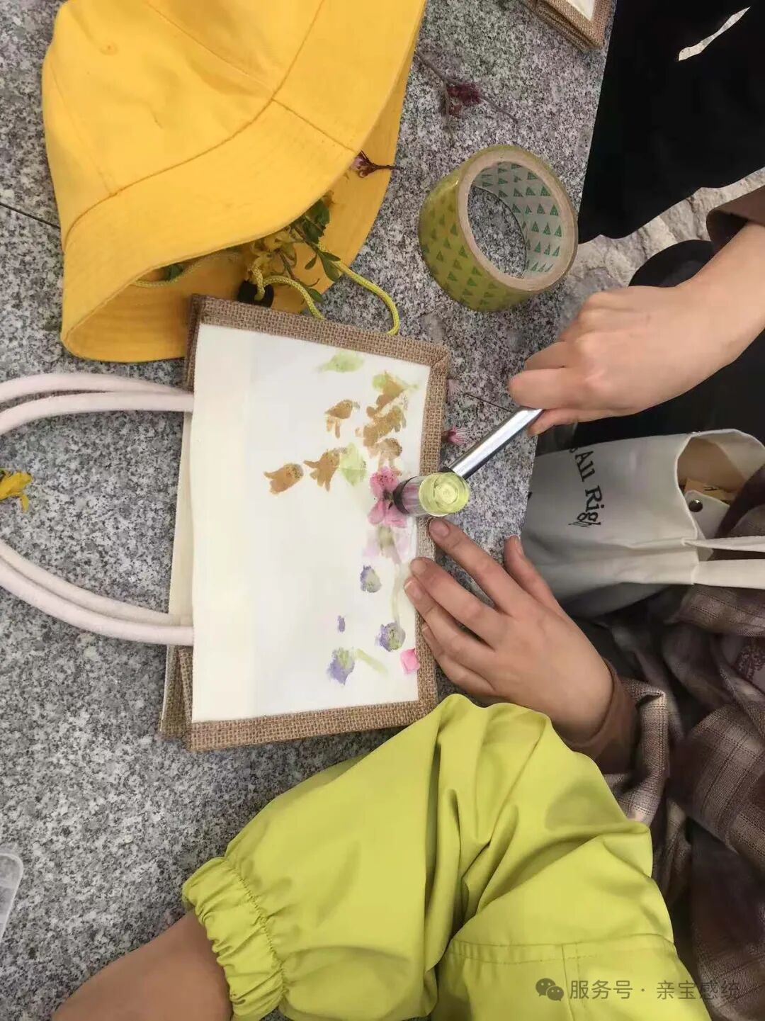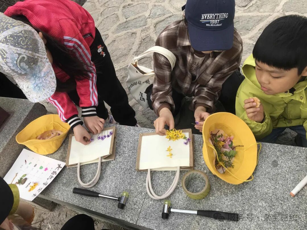 我们一起手工制作了精美的包包,收集了不同质地的材料,如树叶的脉络、可爱的石头等,丰富了触觉体验;制作过程中观察材料的颜色、形状及变化,有助于视觉发展;倾听周围的声音,如风声、虫鸣声等,可刺激听觉,这些都极大促进了小朋友感统的发展。