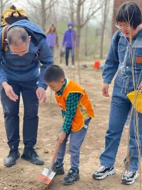 在工作人员的耐心指导下,亲子组合们分工协作,忙得不亦乐乎。宝贝们拿着小铲子小心翼翼地挖坑,小小的身影弯着腰,认真又可爱;家长们则在一旁协助扶苗、填土,大手牵小手的模样格外温馨。一铲一铲泥土落下,不仅将小树苗稳稳扎根,更把对春天的期许、对宝贝成长的祝福,悄悄埋进了土里。看着亲手栽种的小树苗亭亭立起,宝贝们的脸上满是自豪,家长们也纷纷记录下这珍贵的瞬间。